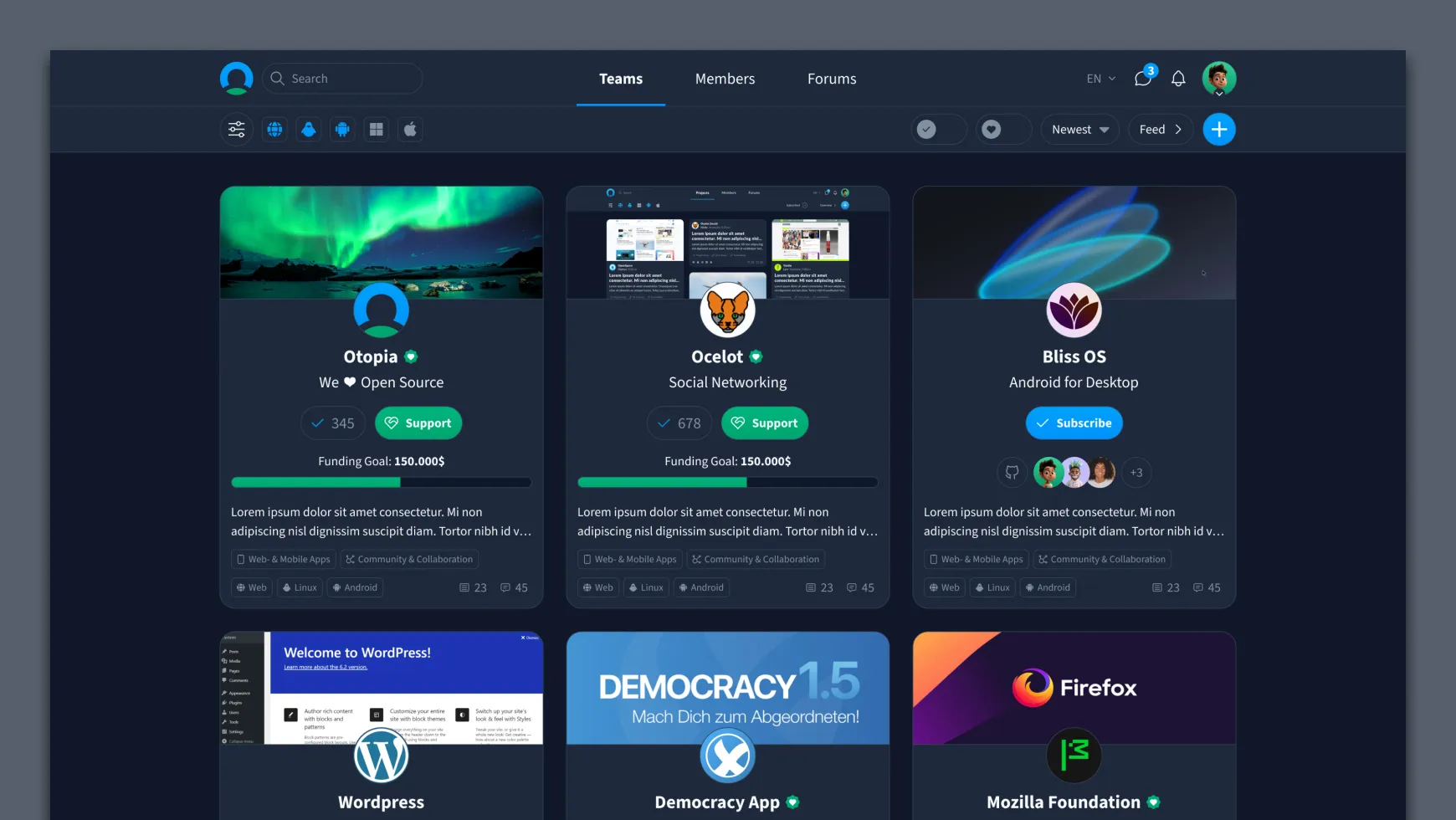 Soziales Netzwerk für Open-Source Projekte, Entwickler und Enthusiasten.